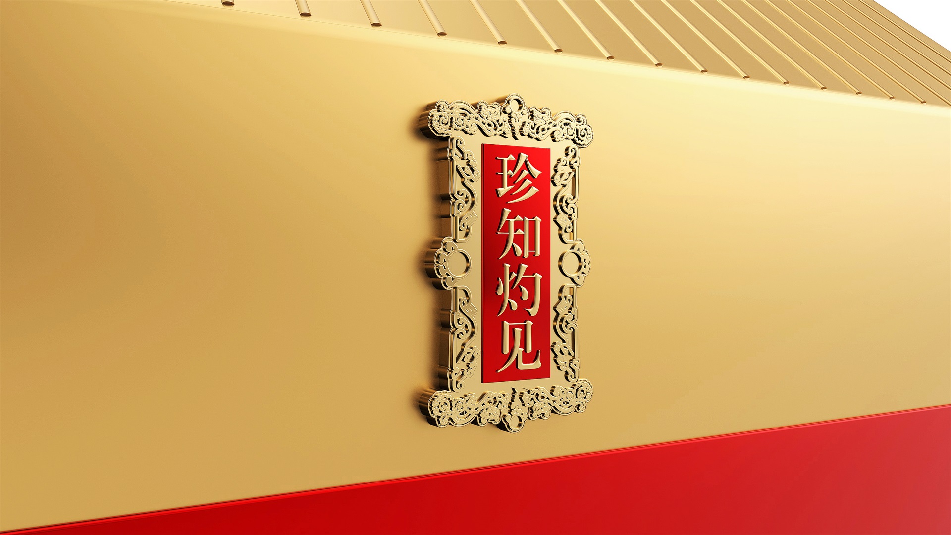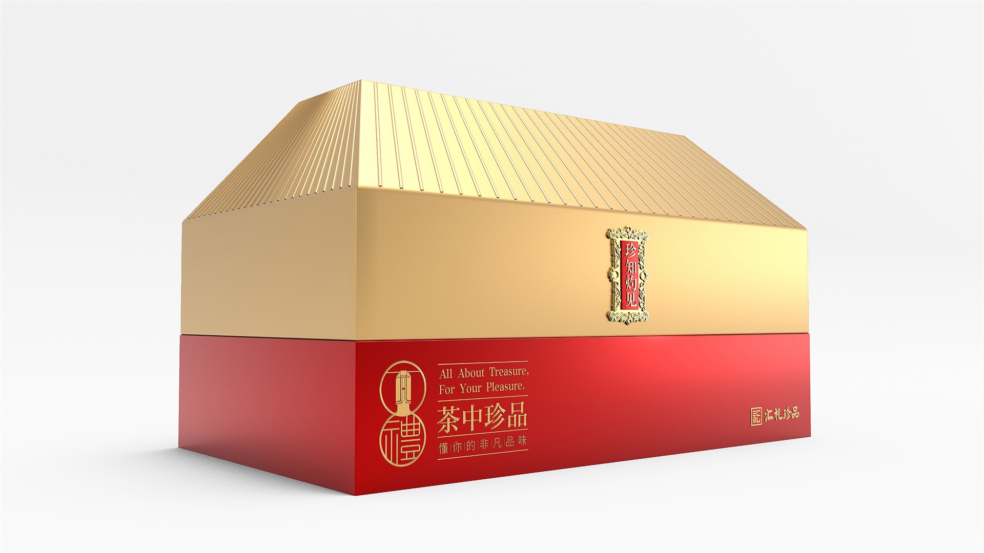 汇礼珍品包装设计,基于产品品级为茶中王者级别,j9九游会所以包装整体造型采用中国古代地位的皇家元素:宫殿为设计灵感进行设计,包装上盖为金色宫殿屋檐造型,斜面上也装饰了代表瓦片的条纹,上盖中部内陷,底部使用水纹铺底,在水纹上飘着一片金色的茶叶,高山流水觅知音,在一个上盖营造出了基于高端气质上,茶道与人道相融的意境画面;在上盖的正面中部,使用宫殿匾额形式作为展示包装的品类名称,将包装的宫殿造型进一步完善。支撑金色宫殿下方的红色地台作为包装下部,在正面放置文字信息和品牌标志。整体采用天地盖的形式,使开盖具备仪式感。内部分包装与外部形式大体相同,但有所以简略,保证整体性的同时也保证整体包装不会过于繁复,保持平衡。
